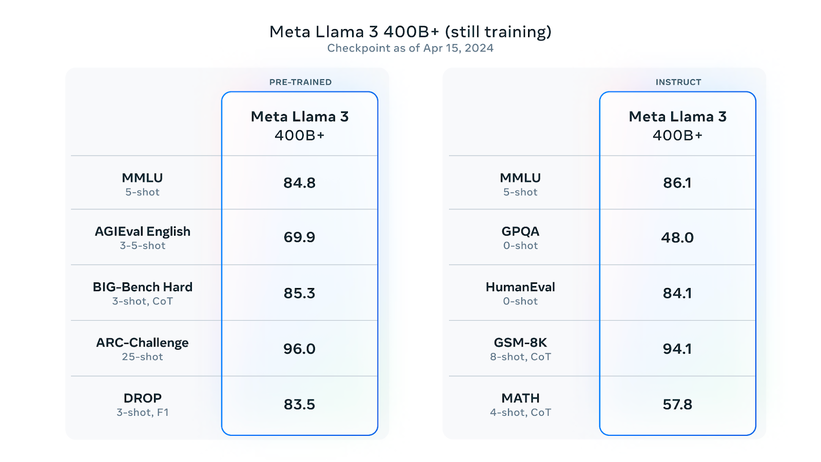 Along with launch announcements, Meta also shared benchmark scores of both its pre-trained and instruct models of Llama 3.